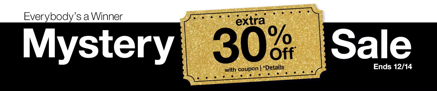 Everybody's a winner! Shop in-store this weekend and receive 30, 40 or 50% off, with the chance of getting $60 off of a $60 or more purchase! Mystery Coupons will be distributed in store and are good through Sunday 12/14!