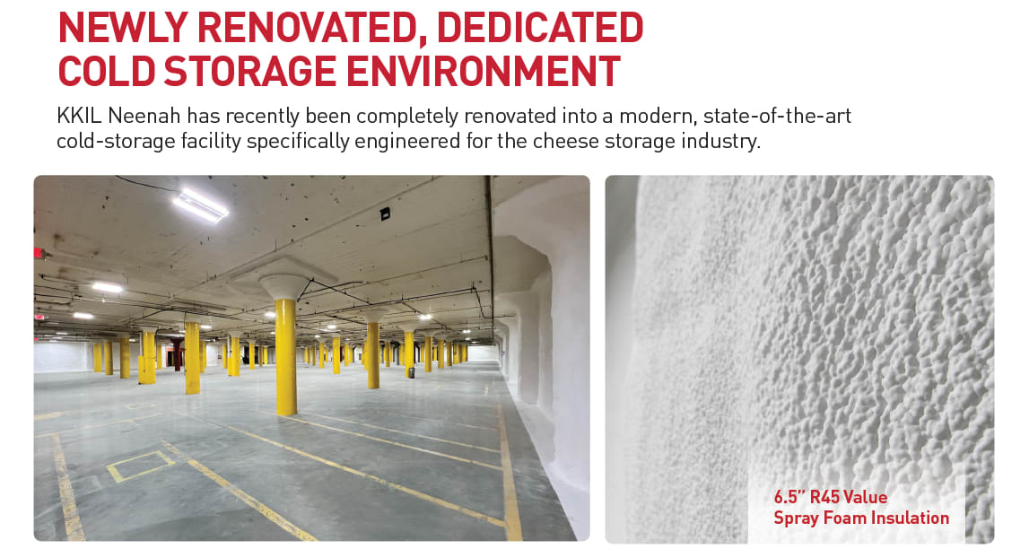 • KKIL Neenah has recently been completely renovated into a modern, state-of-the-art cold-storage facility specifically engineered for the cheese storage industry.