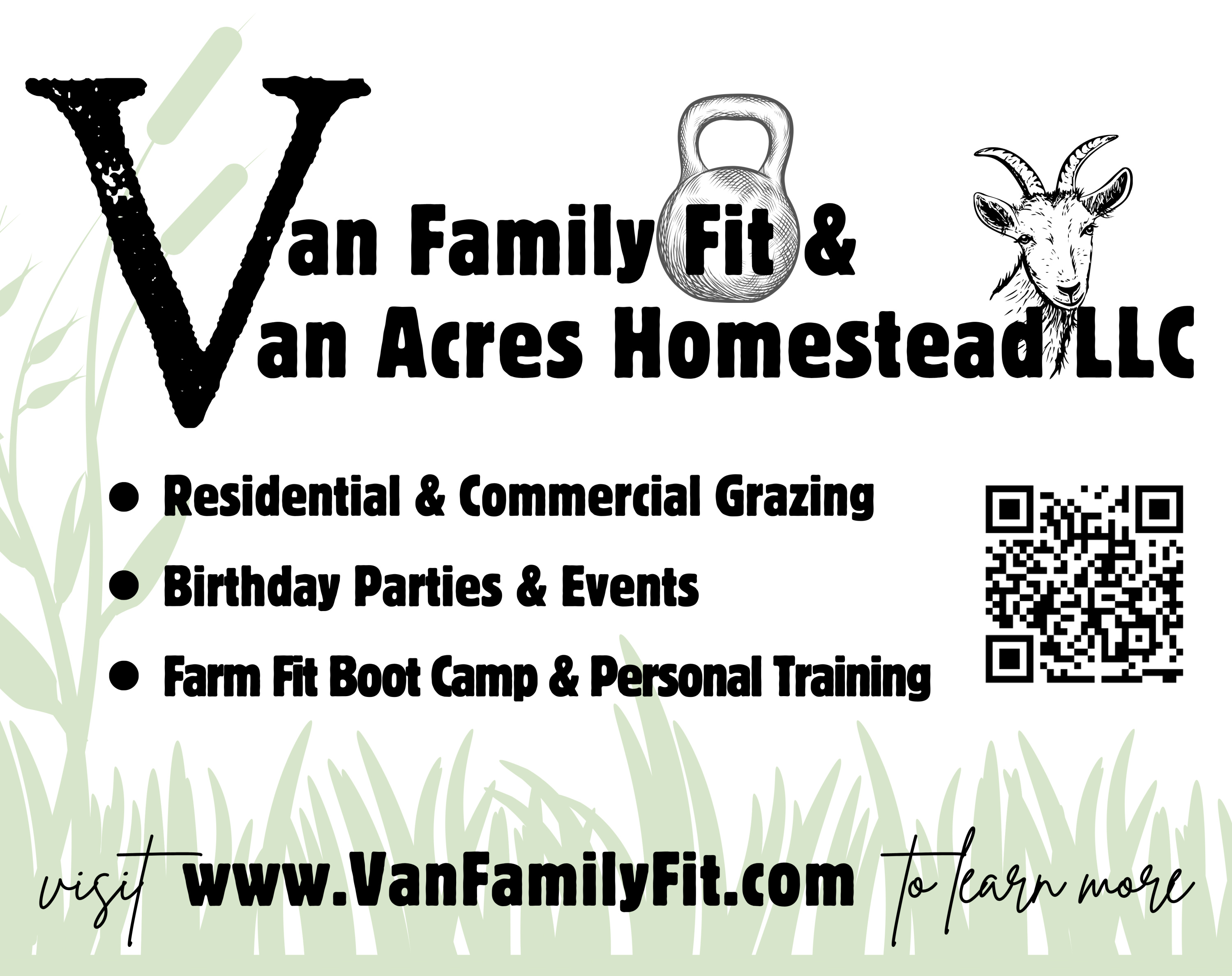 Our days are filled with movement, fresh air, and a whole lot of goat kisses. Through personal training, wellness products, and our eco-friendly land management services (yes, our goats and sheep make amazing natural lawn mowers), we bring together health, sustainability, and a good dose of fun.