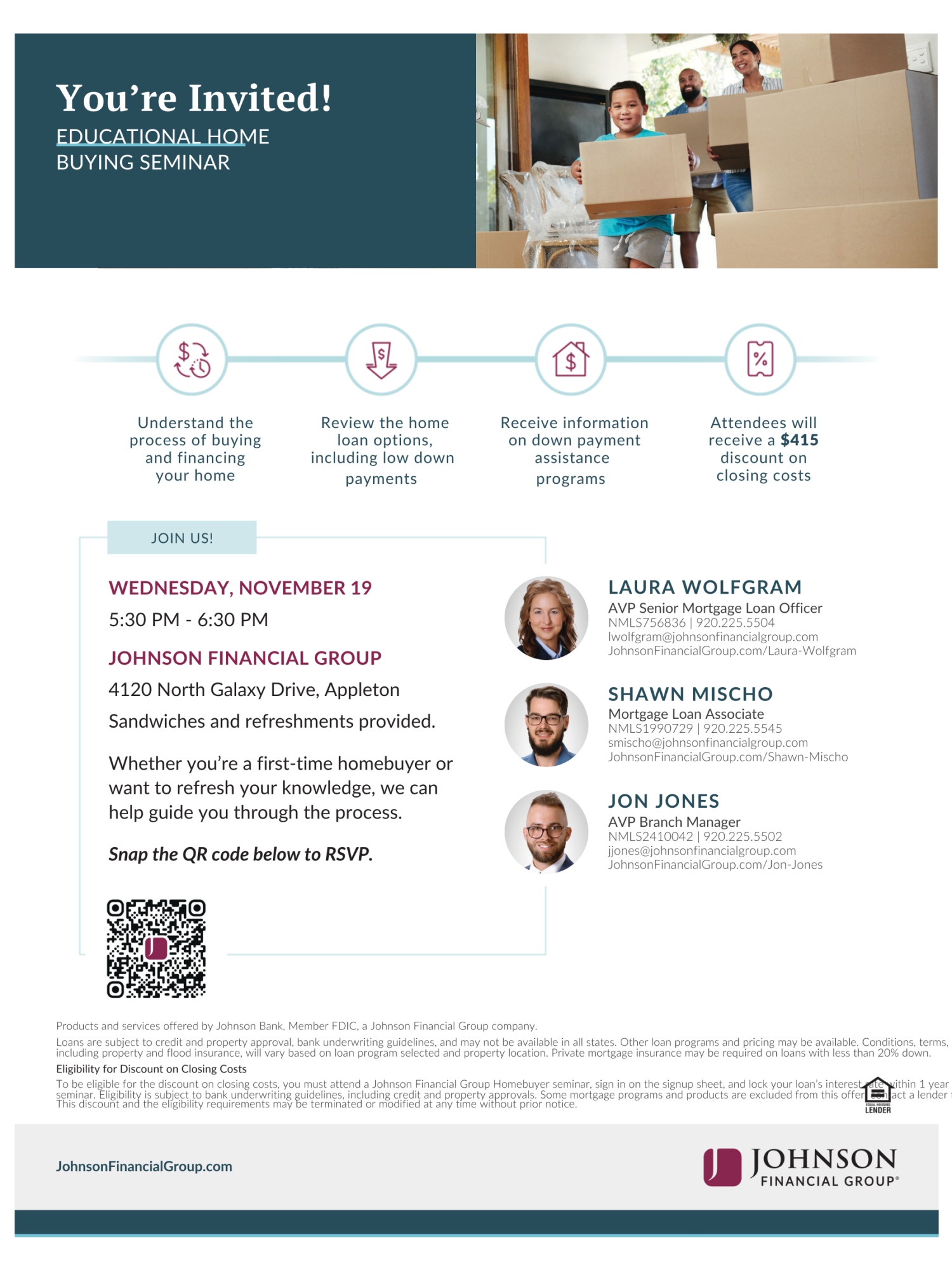 Educational Home Buying Seminar hosted by Johnson Financial Group