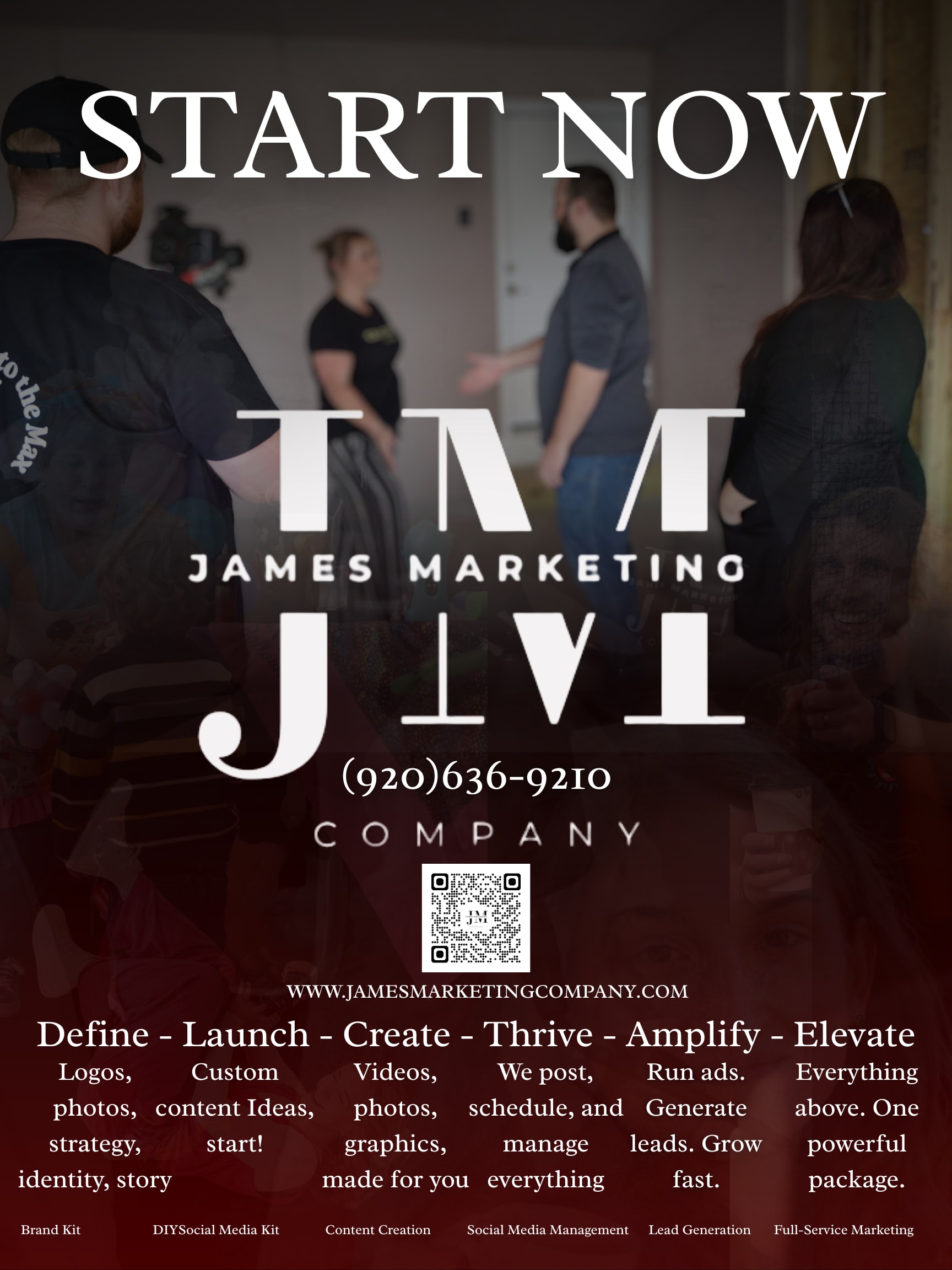 James Marketing Company is your all-in-one marketing partner, helping businesses grow through powerful storytelling, strategic content, and standout branding. Based in Appleton, Wisconsin, we specialize in bringing your business to life—online and in person—through photo and video content, social media management, and full-scale marketing campaigns.