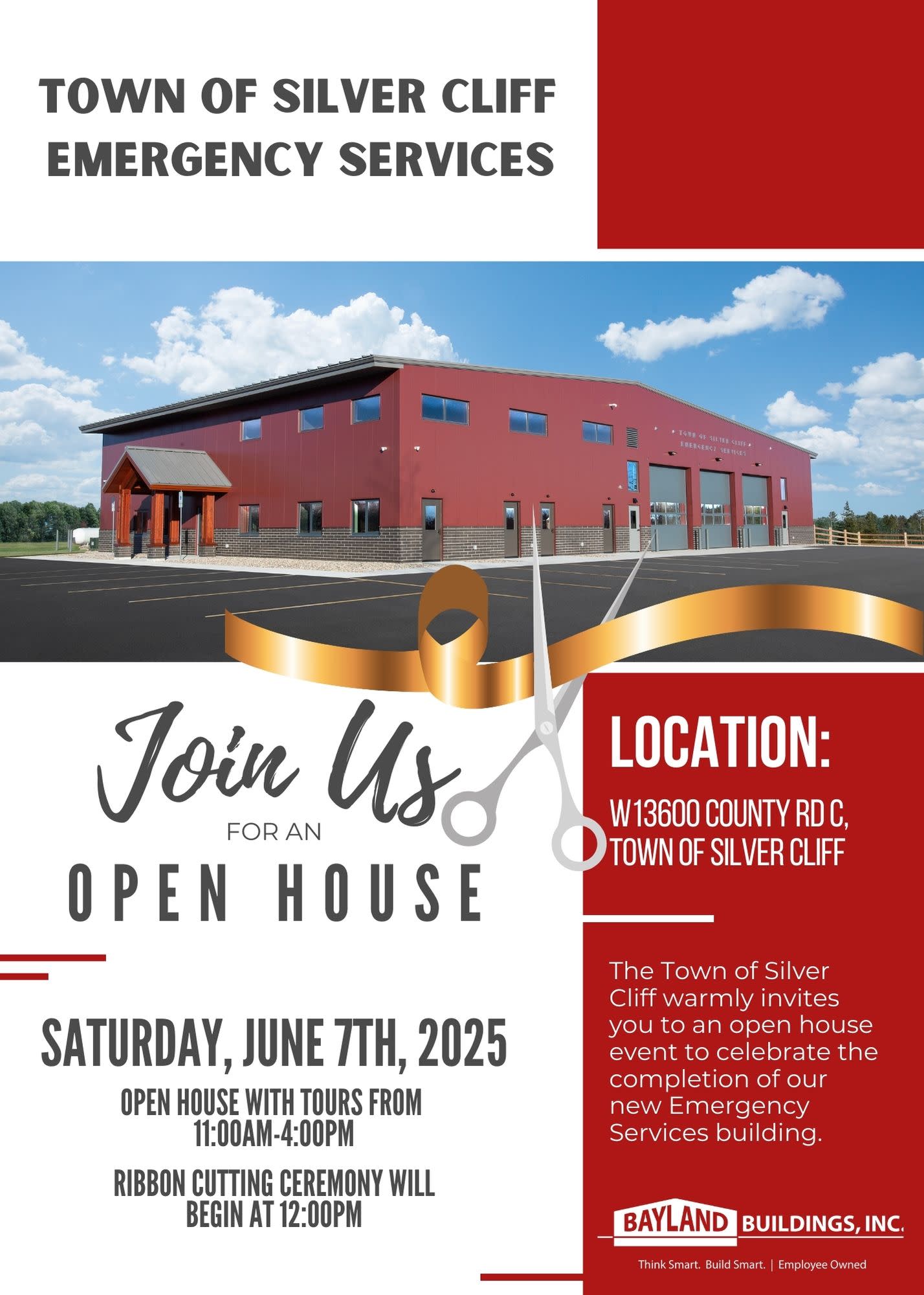 We invite you to join us for a ribbon-cutting ceremony to celebrate the completion of the new Emergency Services building for the Town of Silver Cliff. This new 9,800 square foot facility, built after a tornado destroyed the original structure, includes areas for overnight stays, additional staff accommodations, an apparatus bay, fire and rescue offices, and more! An open house with tours will be held from 11:00 AM to 4:00 PM.